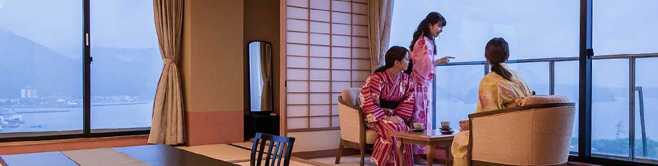 萩湾が一望できる特別室からの風景はまるで自らが天に浮いているかのよう。