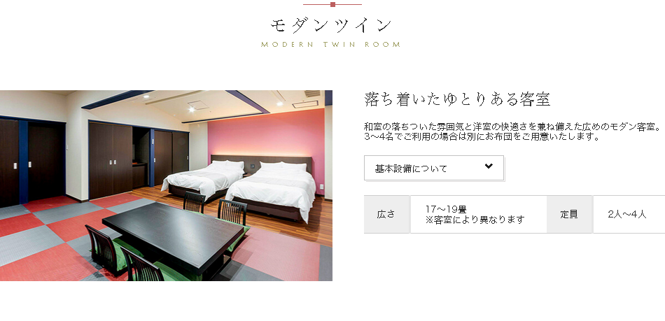 | 広さ | 18.5+4.5畳 | 定員 | 2人〜4人 |
