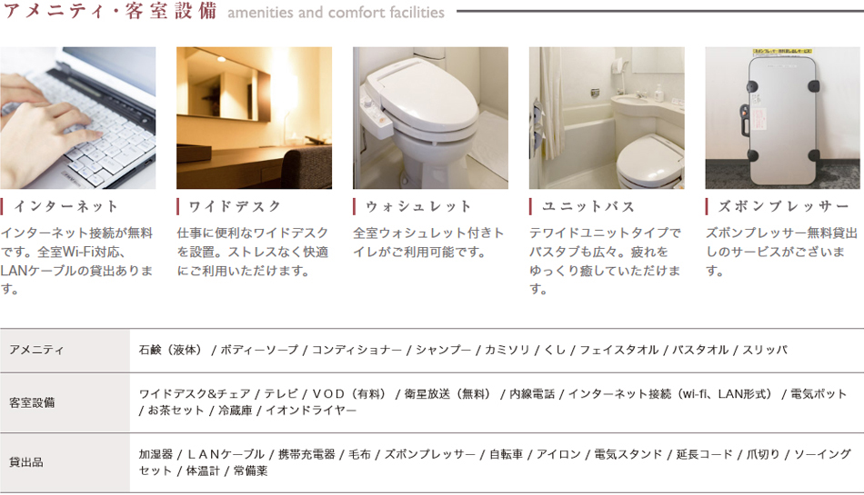 アメニティ・客室設備