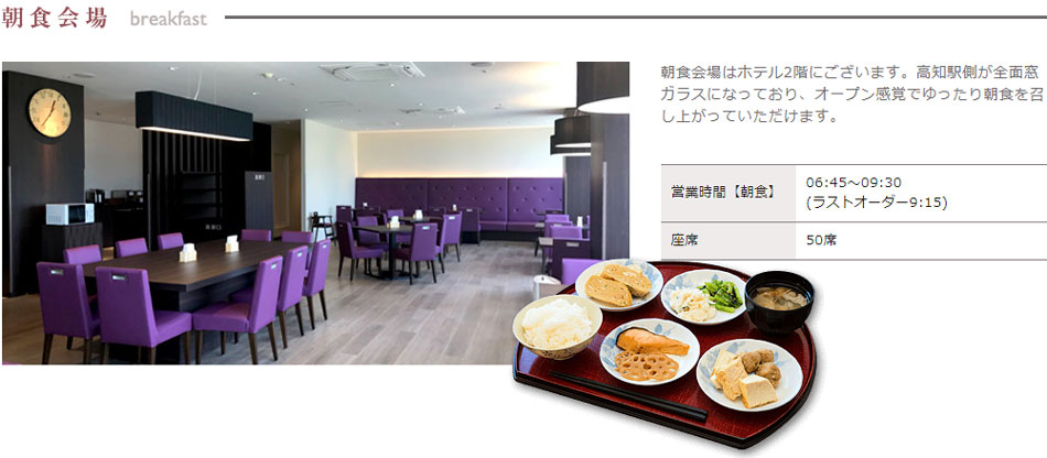 高知駅から近くいつも利用させていただいています。朝食もガッツリいただきました。