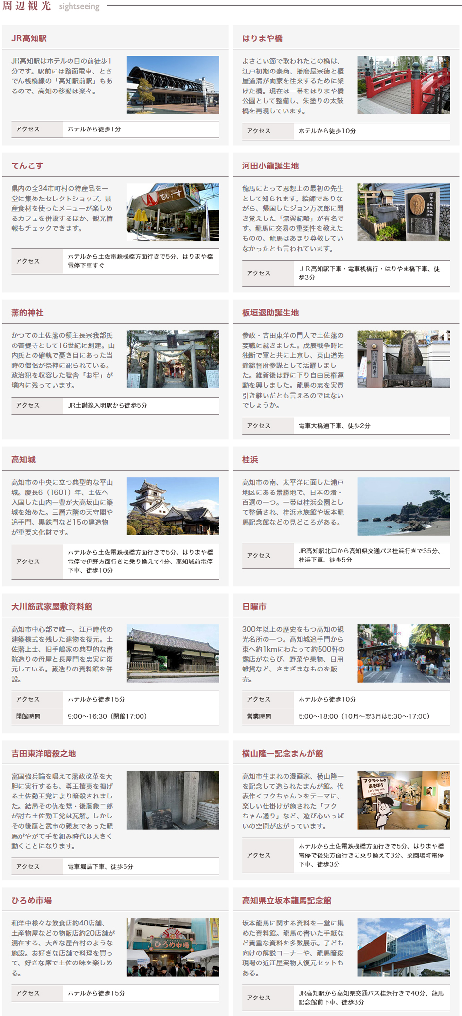 高知ホテル アクセス・観光情報