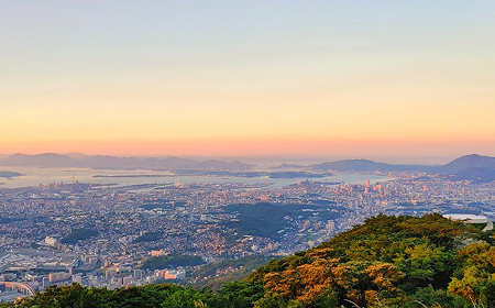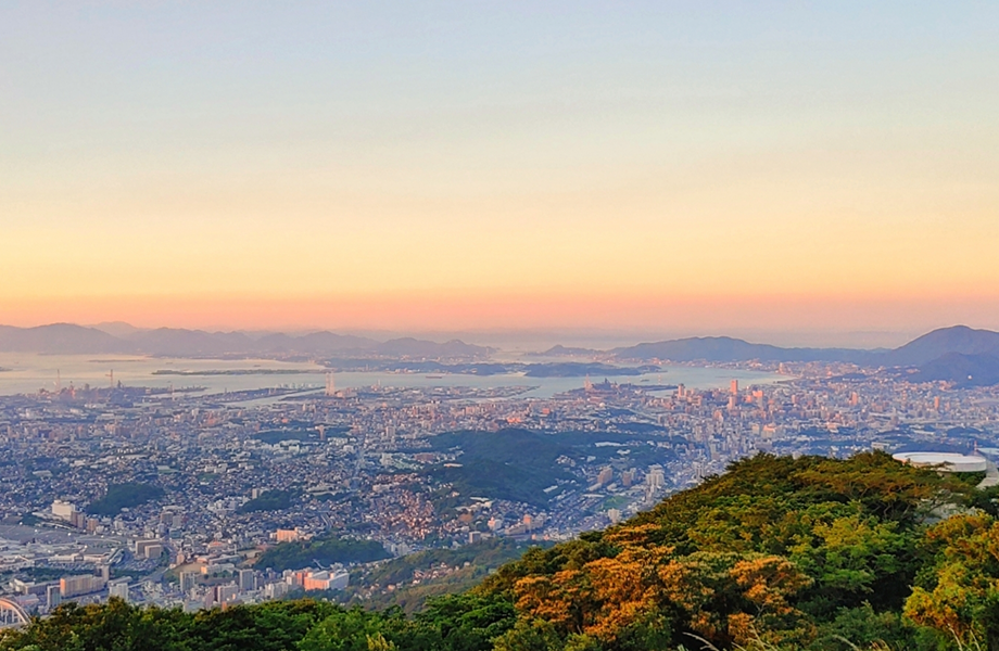 ロープウェイで山頂へ上り、北九州市内や関門海峡を一望。 晴れた日には、遠くまで見渡せる絶景スポット。