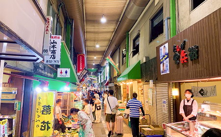 北九州の台所とも言われる「旦過市場」で、鮮魚やお惣菜を味わう。特に新鮮な海鮮丼や名物「うどん焼」が人気。市場の活気ある雰囲気も魅力です。