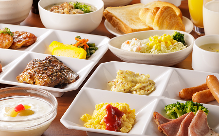 ホテルの朝食を楽しみながら、ゆっくりと出発の準備。黒崎ならではの郷土料理と和洋バイキングを満喫。