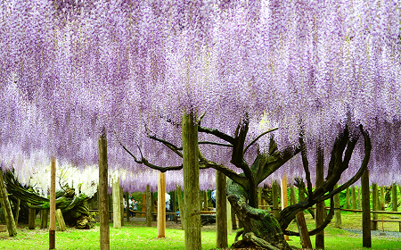 藤の花や紅葉の美しい庭園で、自然の美しさに癒される。 特に春の藤の花が見頃の時期は、多くの観光客が集まる人気スポット。