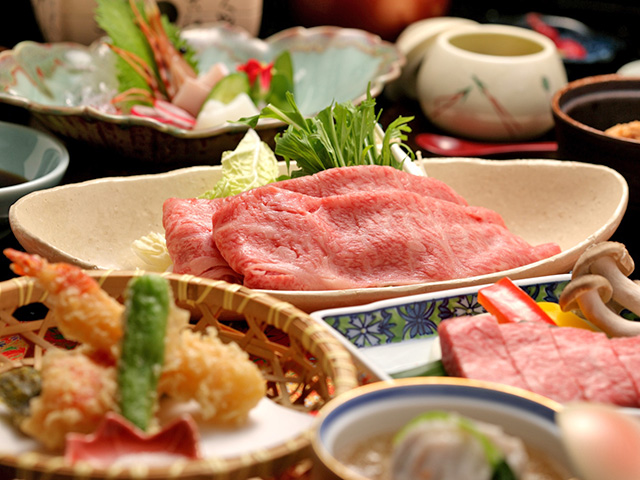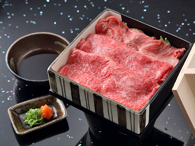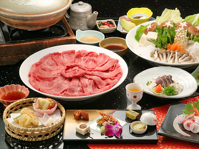 ブランド牛「神戸ビーフ」を贅沢に「しゃぶしゃぶ」「ステーキ」「しぐれ煮」「煮凝り」の4品で、さらに「黒毛和牛タン大和煮」も合わせて5品の牛肉料理付き。