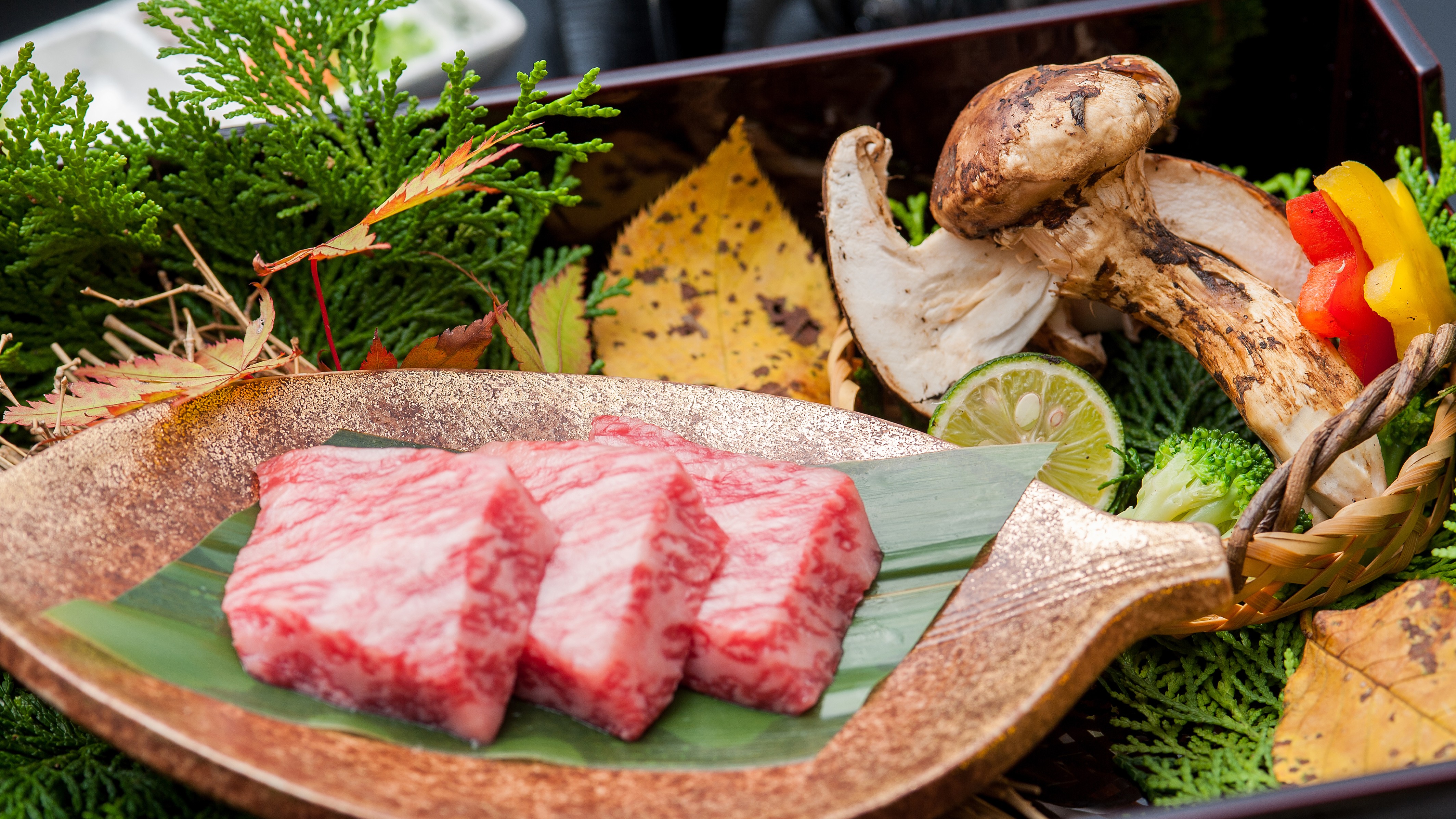 松茸と牛肉の石焼