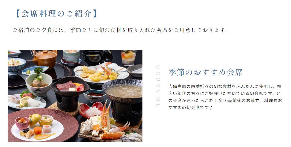 吉備高原リゾートホテル 地元の食材を使ったお料理が自慢!