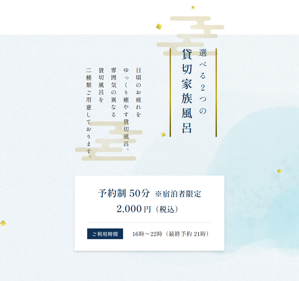 2つの人工温泉★貸切家族風呂★