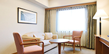 ![]() ■部屋タイプ:リビング+ベッドルーム+バスルーム ■部屋面積:34平米 ■部屋数:21室(禁煙/喫煙) ■定員:3名様 ■設置ベッド:2台+ソファベッド1台 ■ベッド幅:110cm/デュベスタイル |