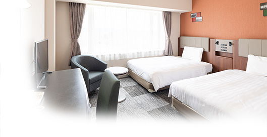 壁紙やカーペットを一新し、地域性を感じられる快適な空間へと生まれ変わりました。旅の疲れを癒す、ゆったりと座れるアームチェアを導入、また、快適な浴び心地が魅力のコンフォートウェーブシャワーを導入しより快適にお過ごしいただけます。快眠枕「チョイスピロー」を全室導入し、より質の高い眠りを提供します。添い寝のお子様は小学生まで無料で宿泊できます。清潔感あふれる親しみやすいモダンで快適な空間で、心地よいひとときをお過ごしください。