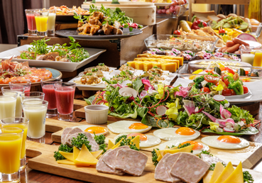 フルビュッフェでご用意しております。日本の生産者から大切に育てられて届く食材・四季・素材を活かしたモーニングを満喫ください。