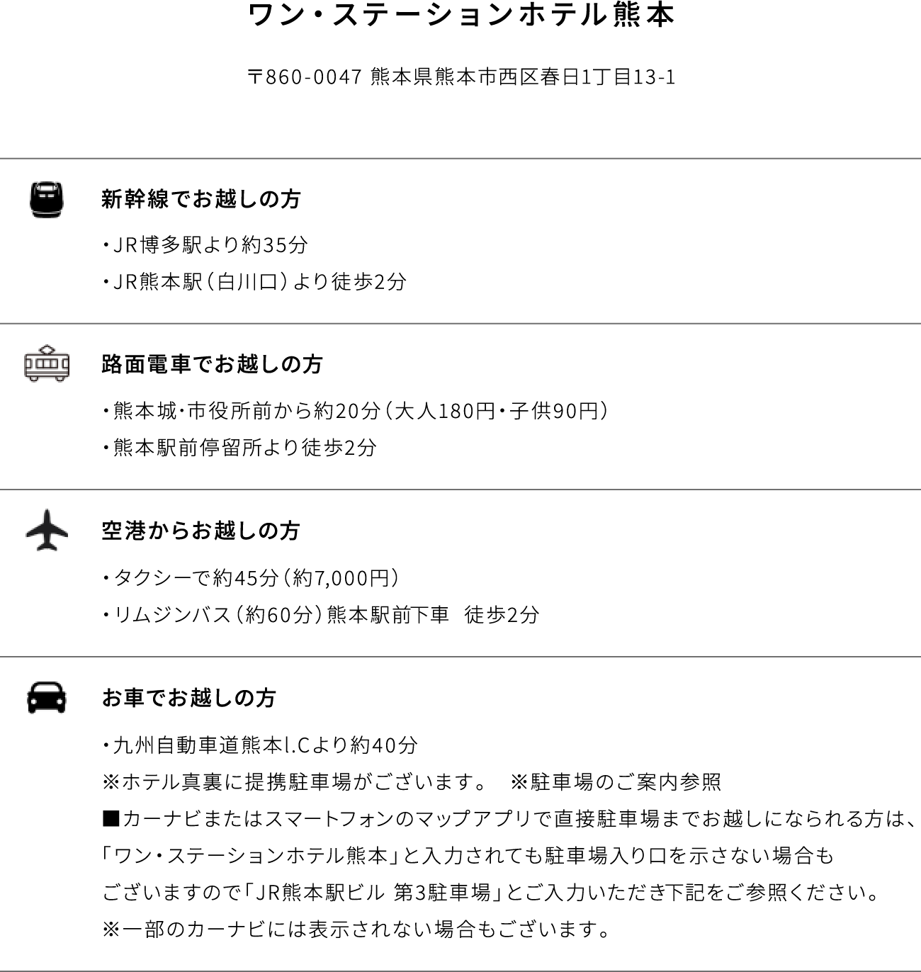 ワン・ステーションホテル熊本(DLIGHT LIFE & HOTELS) アクセス