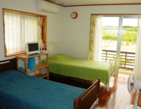 手前のベッドが介護用のベッドです。 |