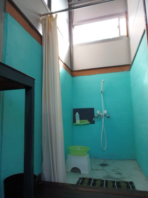 シャワー室は共同ですが、完全個室タイプが3室。朝は、窓から明るい日差しが差し込み、夜には満月が見えることも。 |