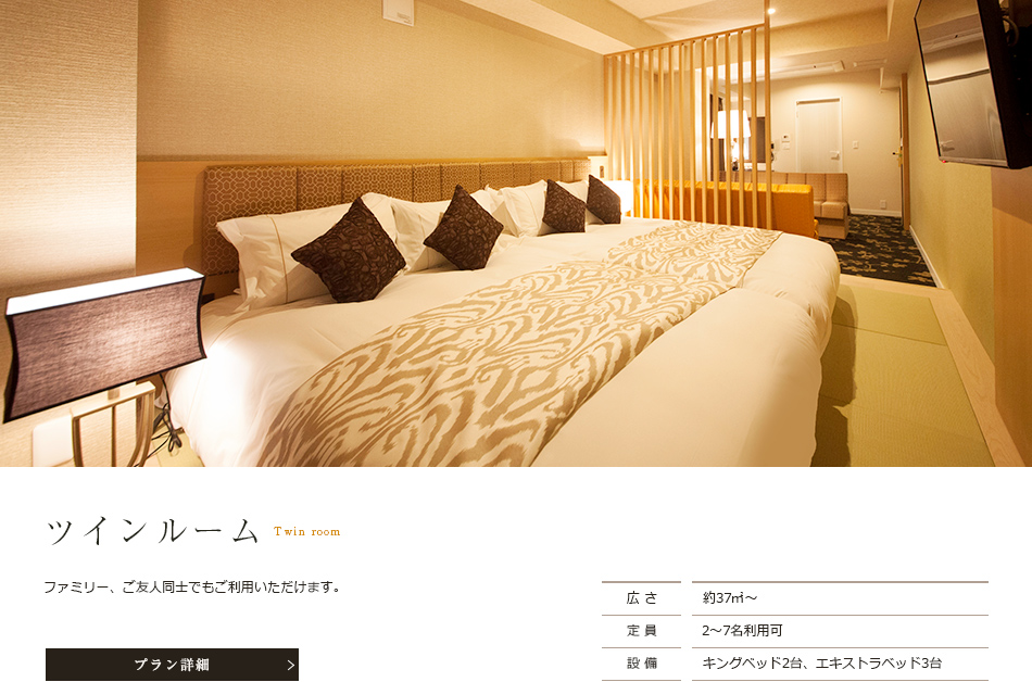 | 部屋設備・備品 | インターネット接続(LAN・無線LAN) 湯沸かしポット 冷蔵庫 ドライヤー ズボンプレッサー(貸出) 電気スタンド(貸出) アイロン(貸出) 加湿器 個別空調 洗浄機付トイレ ベビーベッド ボディーソープ シャンプー コンディショナー 洗顔ソープ 歯磨きセット カミソリ ブラシ タオル バスタオル 浴衣(パジャマ) スリッパ 金庫 |