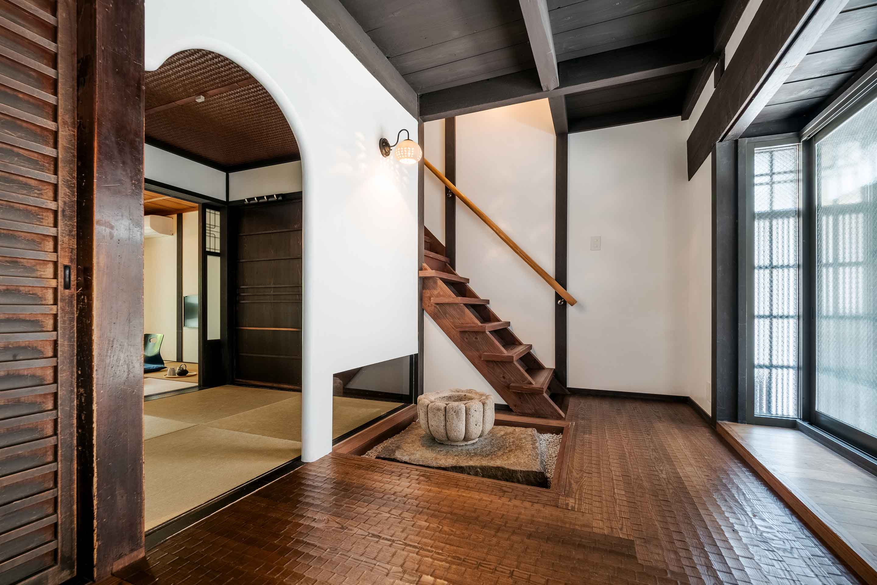 浴室タイルには希少な「十和田石」を。秋田県の一部でしか採掘されない十和田石は、水にぬれると
