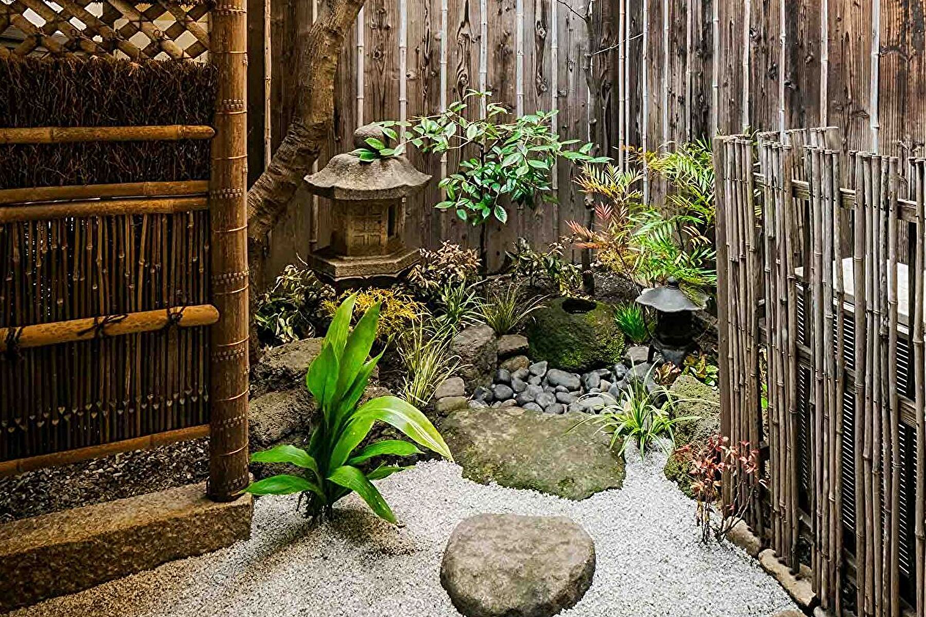 江戸時代から日本庭園で使われてきた木斛(モッコク)や山紅葉、杉苔などが植え込まれた伝統的な和風庭園。庭の隅には日本の伝統工芸である「菊炭」を使用。「菊炭」は表面に菊の花が咲いた様な美しい模様の炭です。ぜひ庭に下りて、近くでご覧ください。夜にはライトアップをして、少し違った景色を眺めることも出来ます。