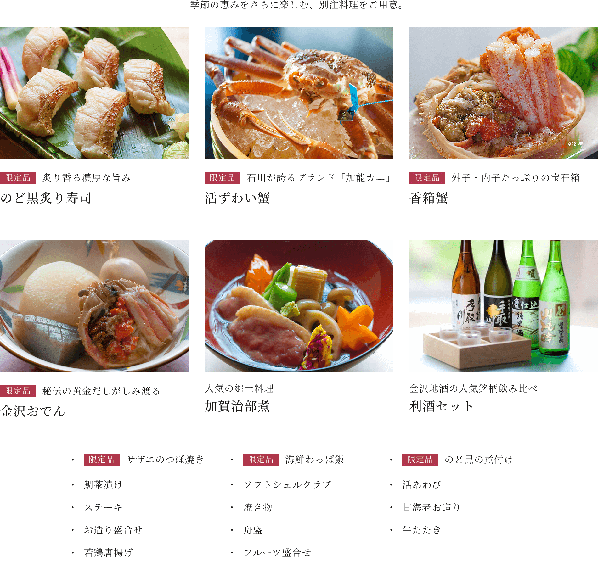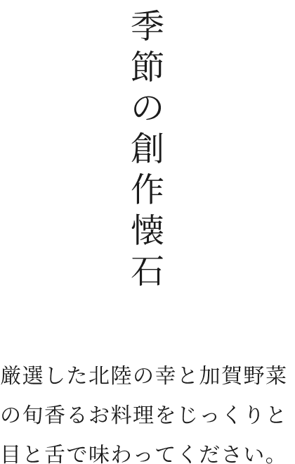 歴代の職人が受け継ぐ技と心で、加賀・金沢の旬を織りなす「のとや」ならではの至高の懐石料理。