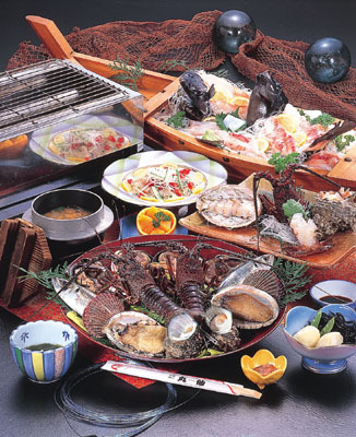 |  | | | | | | 当館では、国崎産極上鮑を使った「鮑尽くしプラン」をはじめ、網元だからできる海から直送、四季折々飛びっきりの魚介でおもてなしいたします。 |