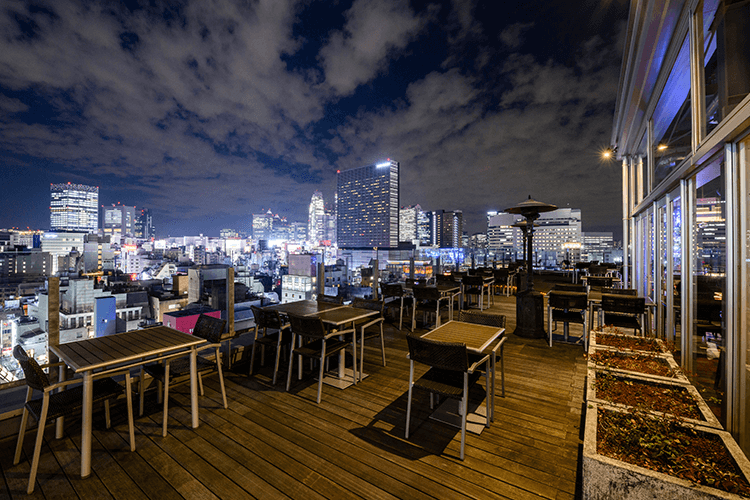 日本では数少ない、開放感溢れるルーフトップテラスでは、新宿の100万ドルの夜景を一望に素敵なひと時をお過ごしいただけます。バー・テラスともに、上質な音楽・夜景・リーズナブルなお酒、軽食をお楽しみいただけます。