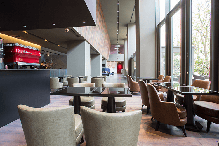 皆様がゆっくりと素敵な時間をお過ごしいただけるよう、心地良い音楽、本場エスプレッソコーヒー、生ビール・他アルコール類、美味しい食事をご用意してお待ちしております。打ち合わせや商談の場としてもご利用いただけます。前面に広がるガーデンテラス席も是非ご利用ください。