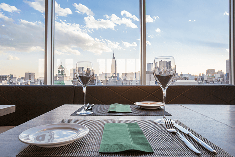 全面ガラス張りの店内で、新宿の風景を一望しながら素敵な時間をお過ごしください。