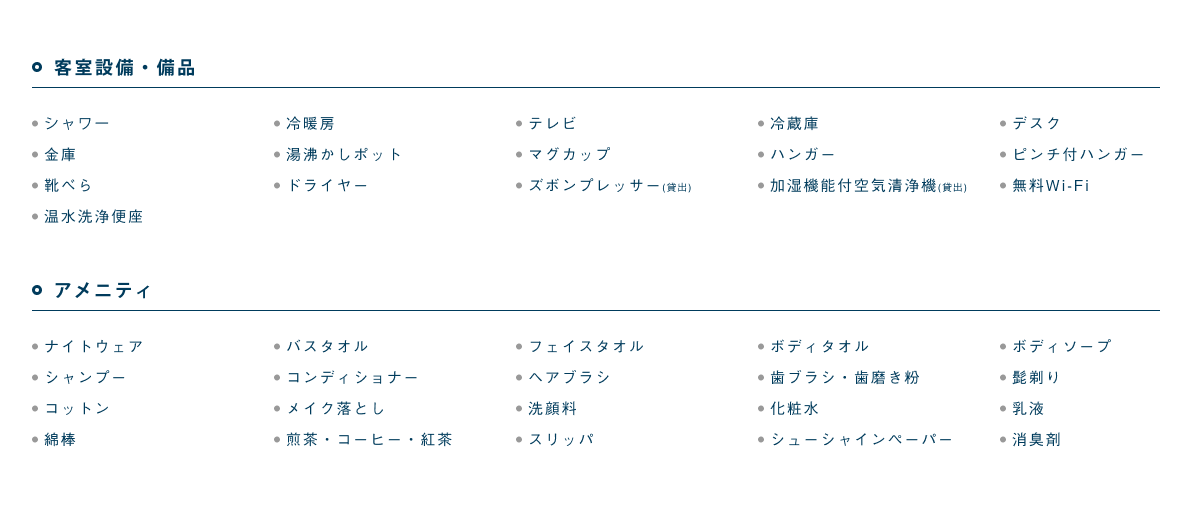客室設備 / アメニティの詳細はこちら