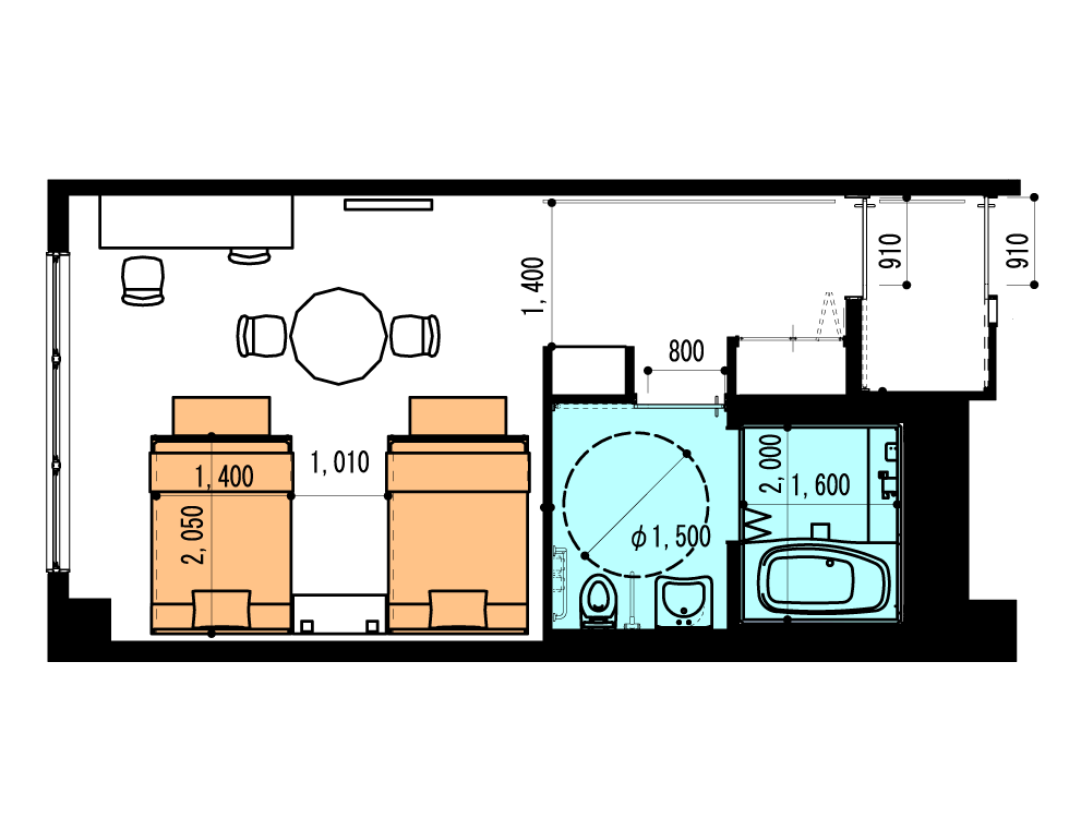 2名様でのご利用やビジネスユースに最適な快適性と広さを追求しています。