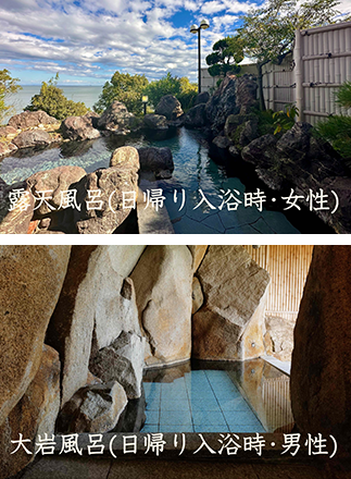 男性のお客様は室内の「大岩温泉」、女性のお客様は室外の「露天温泉」をご利用いただけます。
