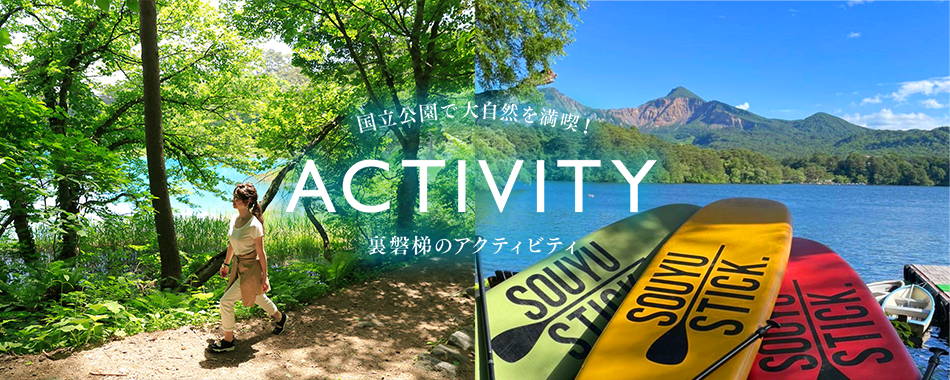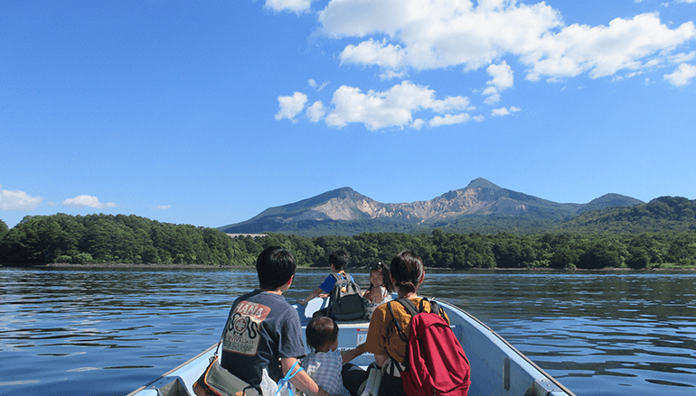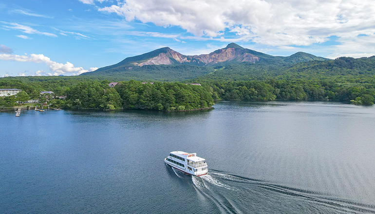大自然を満喫できる裏磐梯高原。裏磐梯最大の湖「桧原湖」では、磐梯山の荒々しい爆裂口を眺めながら、湖に浮かぶ島々の間をゆったりと巡ります。