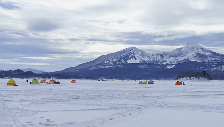 釣り小屋を貸切り、自分たちの空間で楽しめます。小屋までスノーバイクで送迎してくれるのもアトラクション気分で爽快!グループ内で何匹釣れるかバトルするのも楽しいかもしれません。
