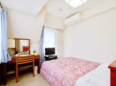 お部屋はシングル・ダブル・ツインの3タイプをご用意。全室バス・トイレ付きです。