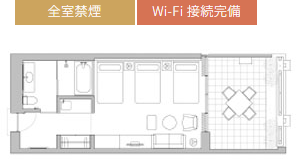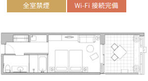 32.4平米のゆとりのある客室。いつもの 時間から離れ至福なひとときを お過ごしください。ご夫婦・カップル・ご友人や ビジネス利用などにご利用いただけます。