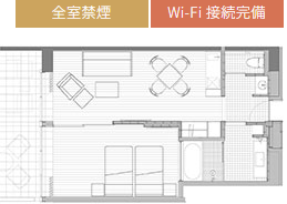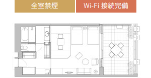 カップルに最適なお部屋は、 ゆとりある広さで心地よく お過ごしいただけます。