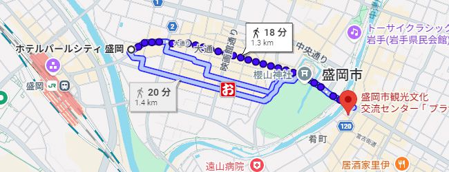東北新幹線・盛岡駅地下道を出てから徒歩5分