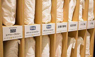 『エアウィーヴピロー』や『シモンズ製ポケットコイルピロー』、ネット通販ランキング常に上位の『王様の夢枕』をはじめ様々な種類の枕を取り揃えました。是非「あなたに合った枕を見つけませんか?」