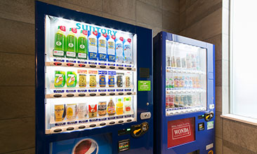 1階ロビーには自動販売機を2機ご用意しております。アルコールをはじめ、お茶、水の販売と簡単なおつまみも販売しております。