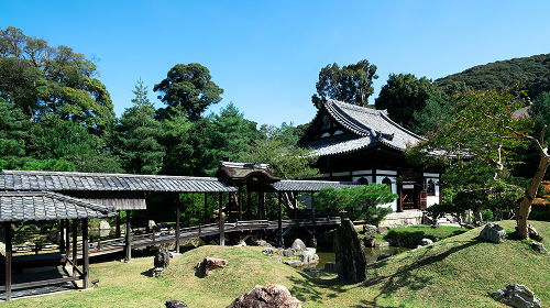 小堀遠州作による池泉回遊式庭園は、国の史跡・名勝に指定されており、紅葉や桜の名所としても知られています。秀吉とねねを祀る「霊屋(おたまや)」の内部には、桃山美術の粋を集めた「高台寺蒔絵」が施されています。