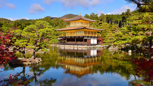 室町幕府3代将軍・足利義満が、1397年に西園寺家から譲り受けた山荘を寺院に改めた、臨済宗相国寺派の寺院です。ユネスコの世界文化遺産に登録されています。