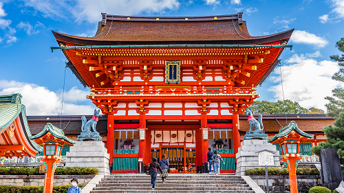 「お稲荷さん」と親しまれる伏見稲荷大社は、全国に約3万社ある稲荷神社の総本宮です。鮮やかな朱色が美しい「千本鳥居」は、幻想的で優美な光景をつくりだしています。