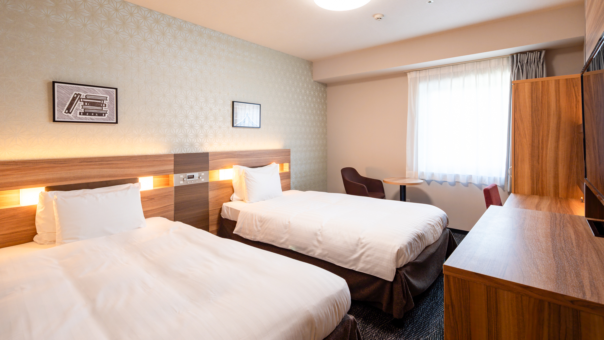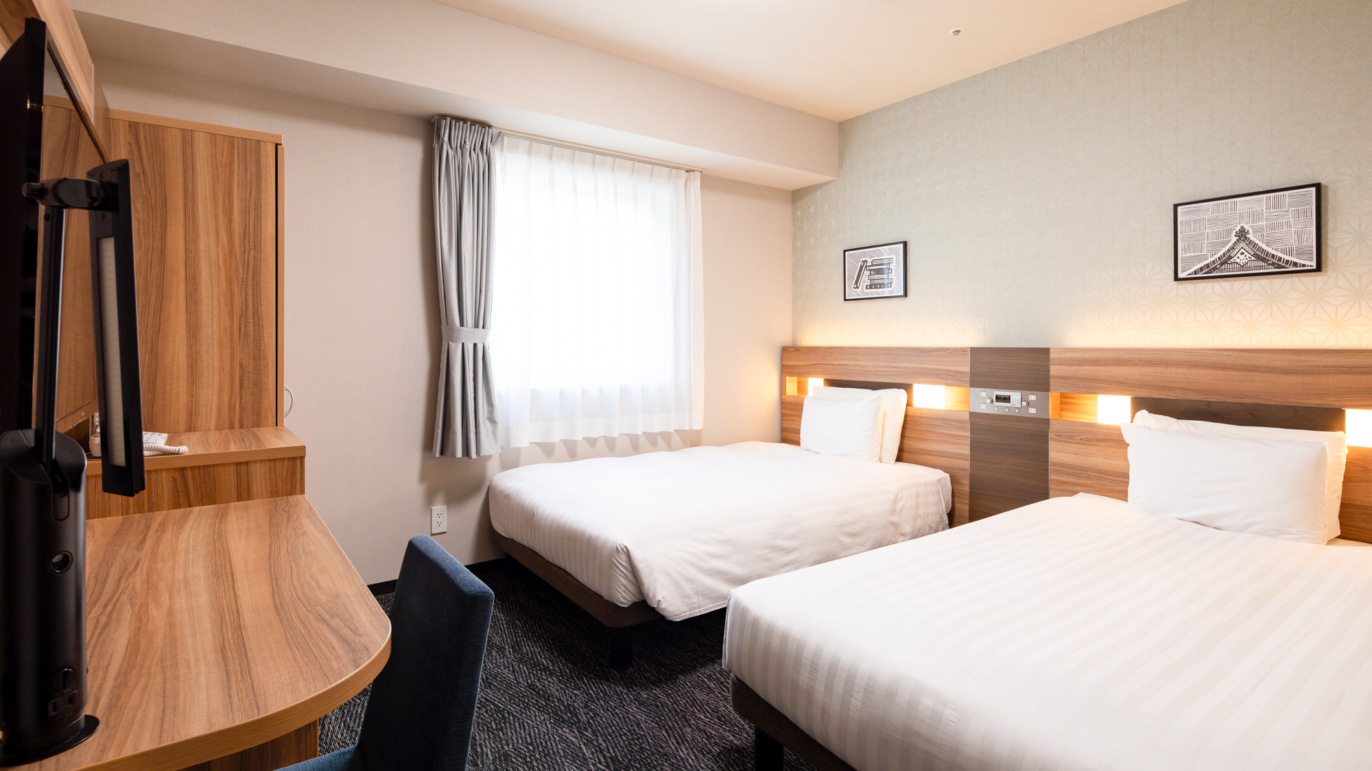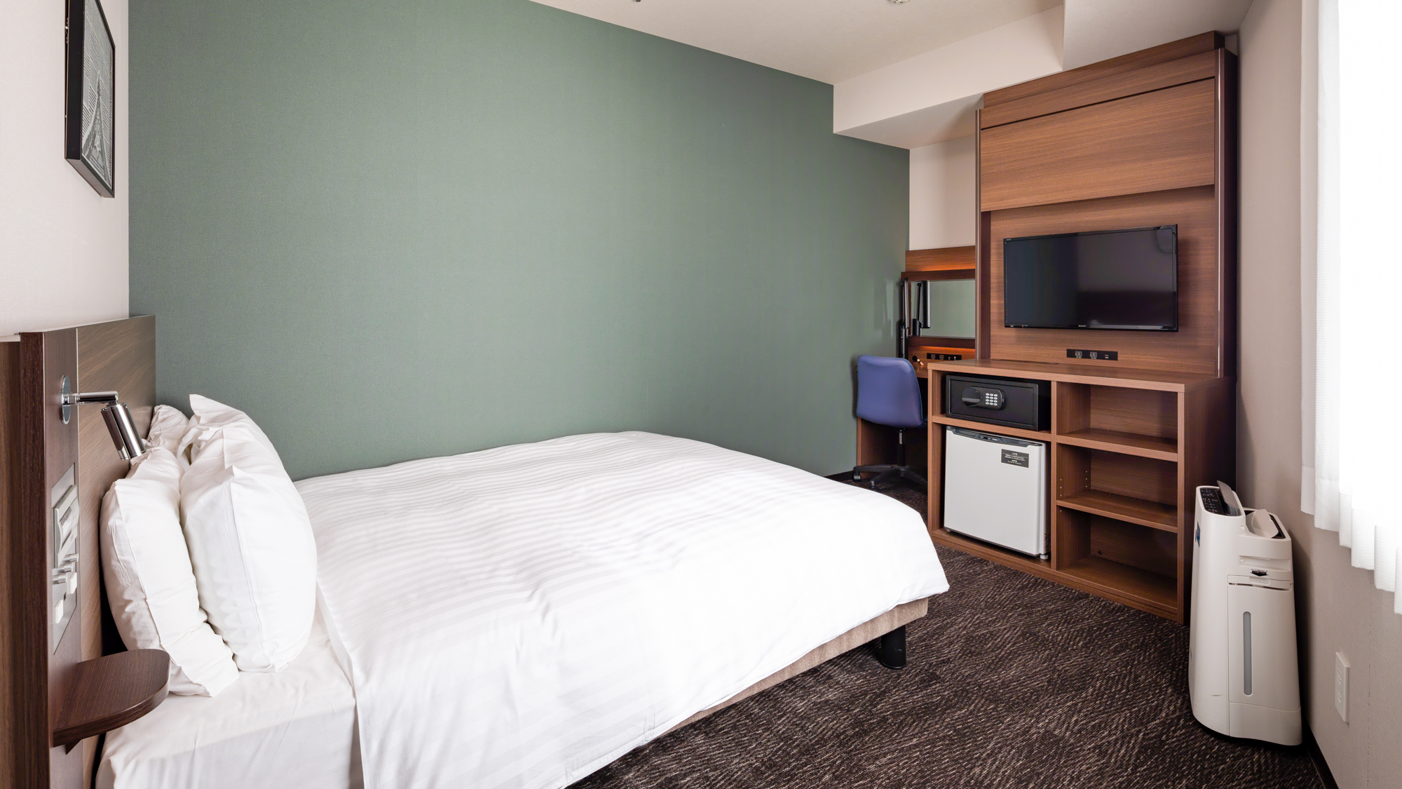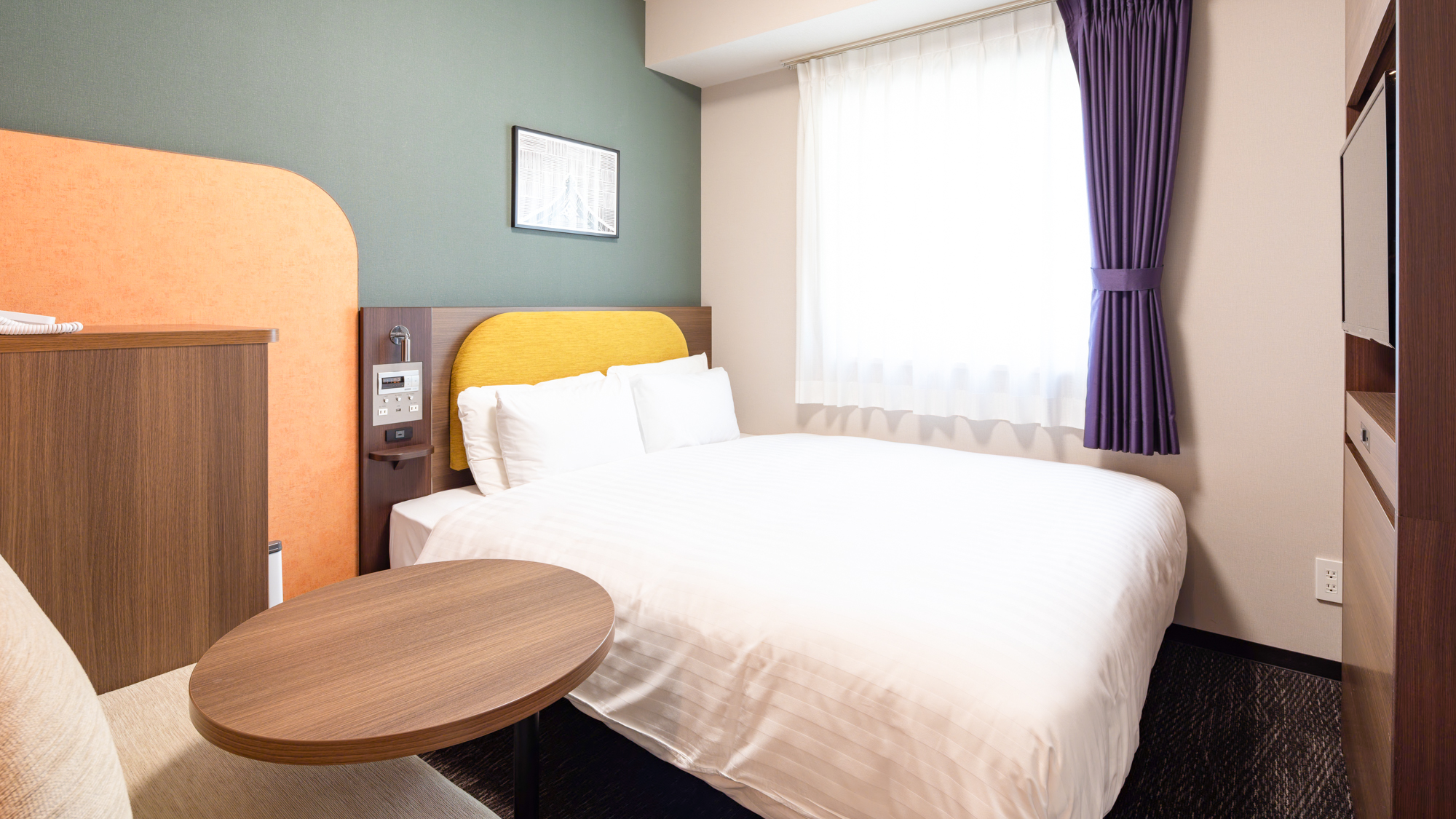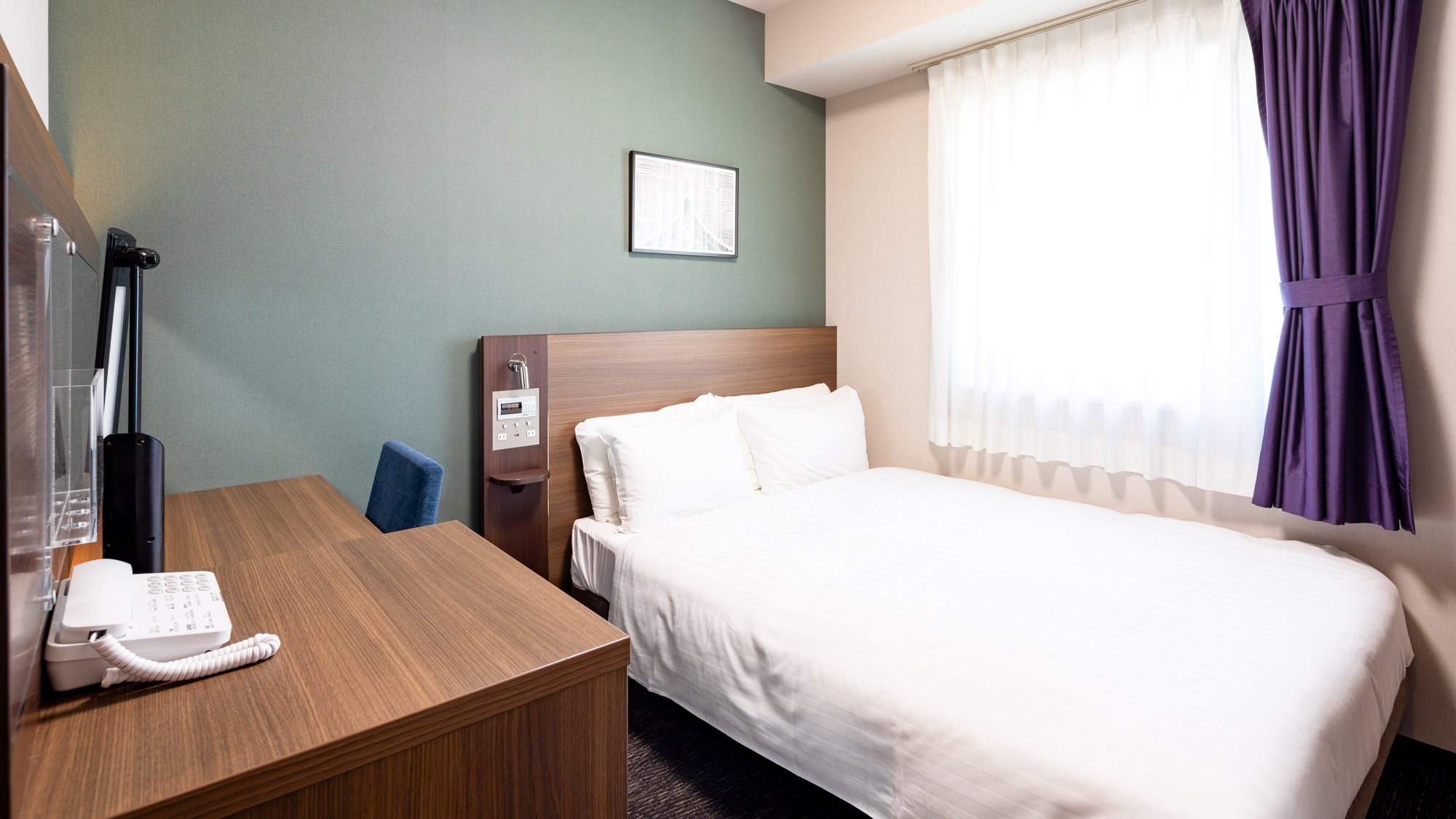 1名でのご利用はもちろん、ご家族やカップルのお客様にもおすすめです。ダブルサイズのベッドを設置した客室でゆったりとおくつろぎください。