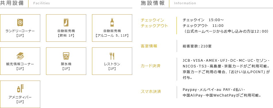 ご宿泊のお客様に快適にお過ごしいただけるよう、様々な館内設備をご用意しています。