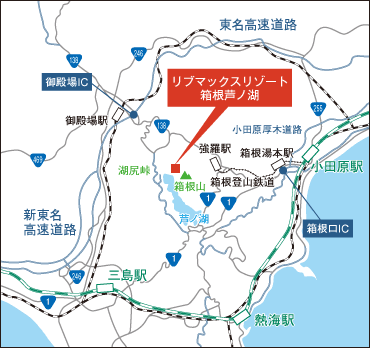 - 東名高速道路→「御殿場IC」→国道138号線を経由してホテルへ 約20分