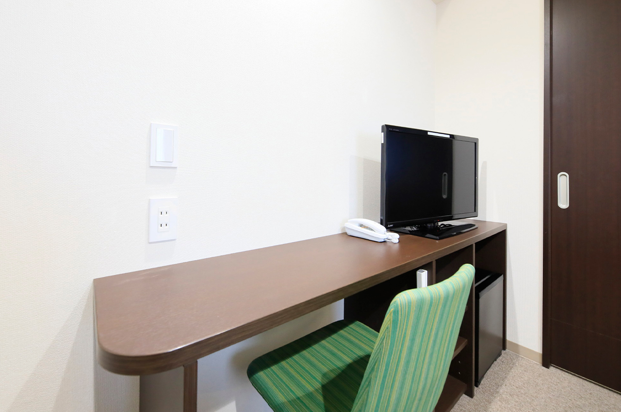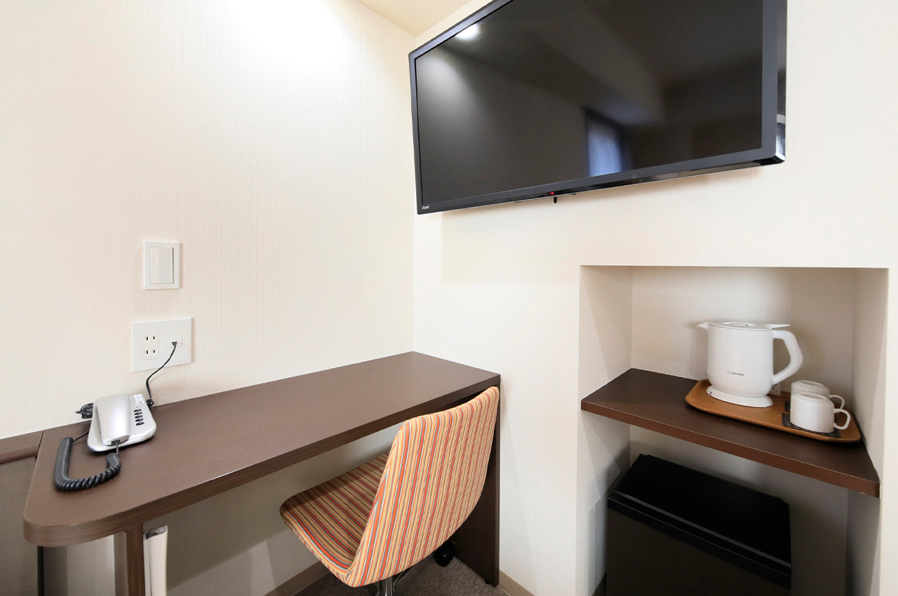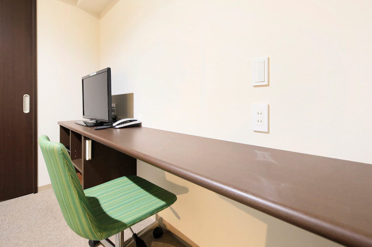 コンパクトでリーズナブルなシングルルームです。横長のデスクがあり、空きスペースも広く、ビジネスの方や荷物の多い長期滞在者にオススメです。