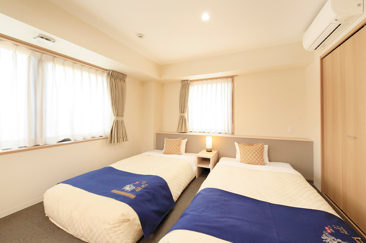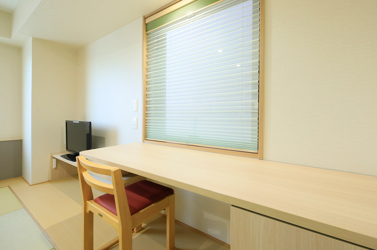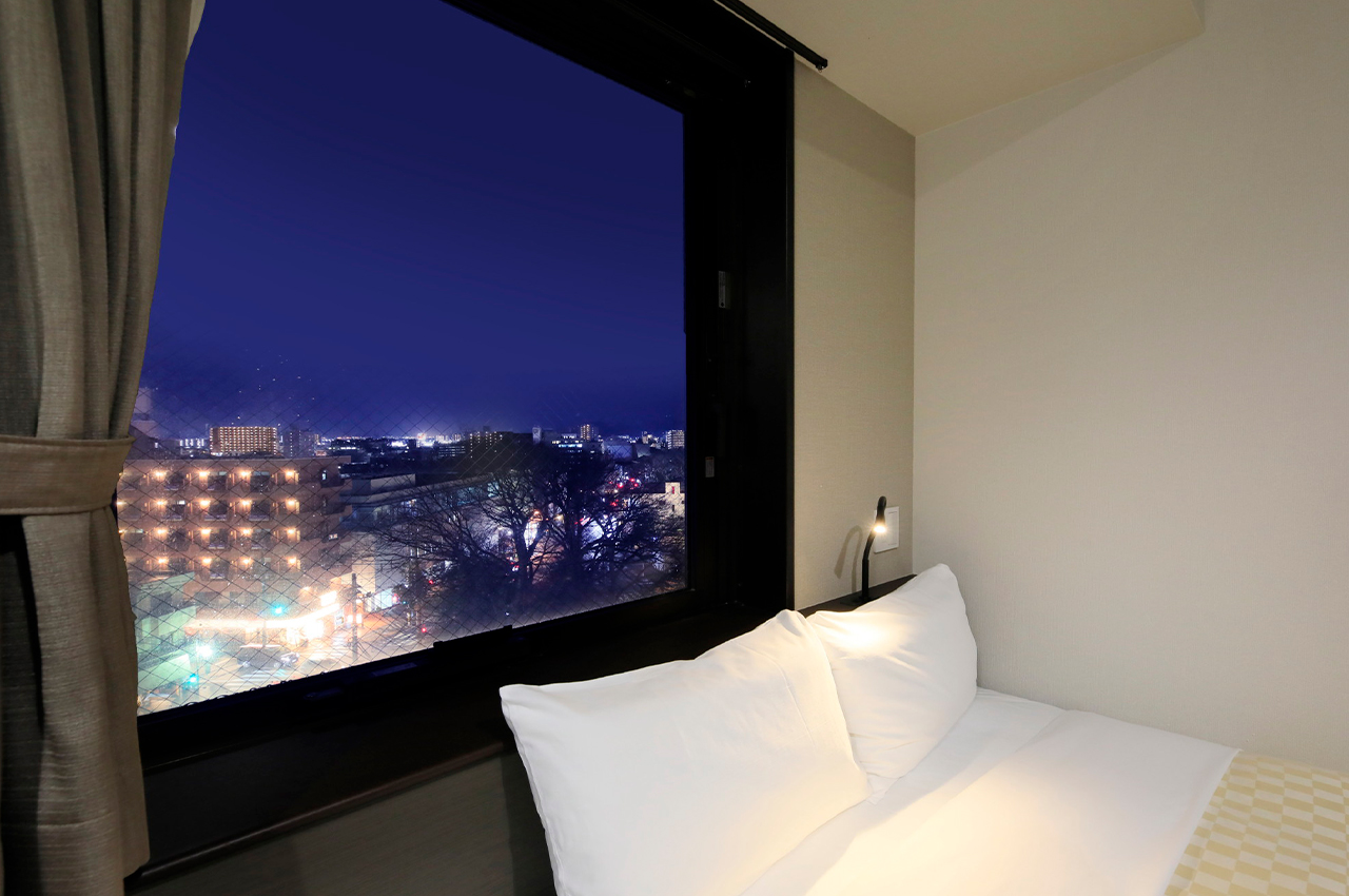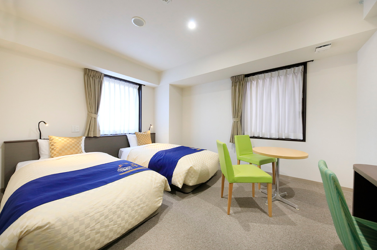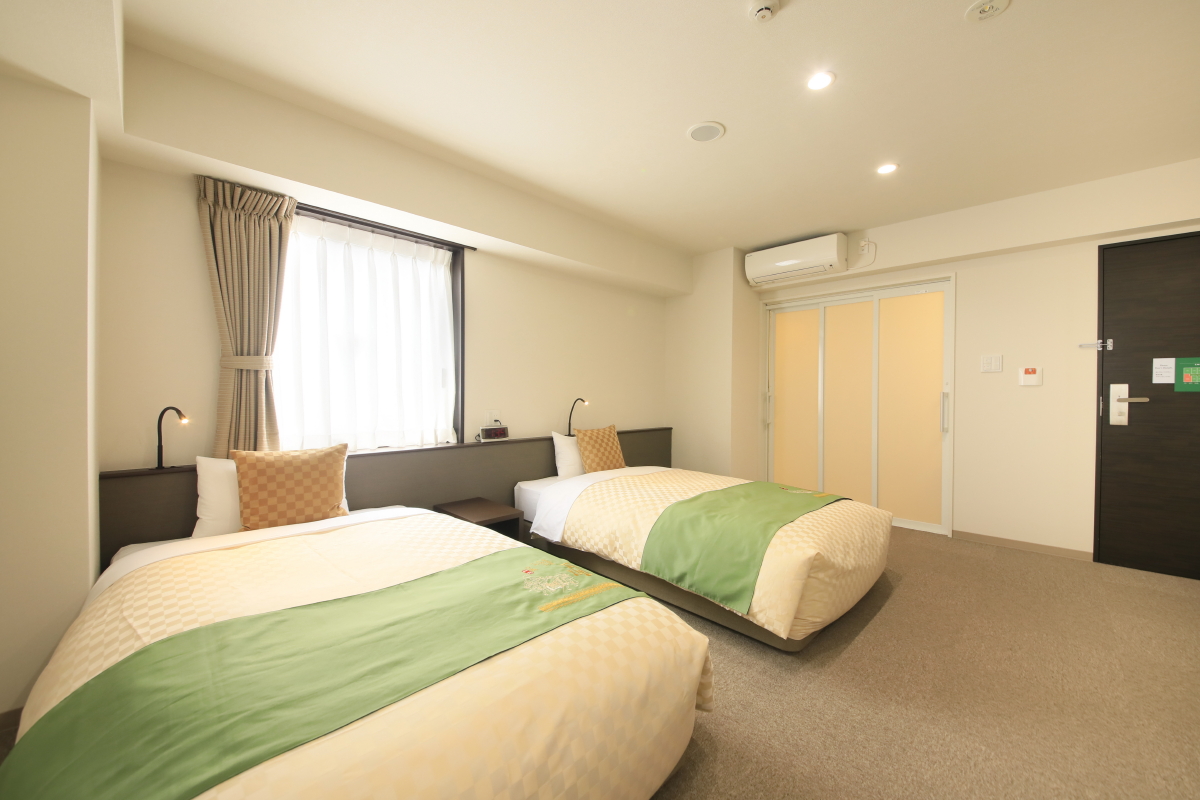 当ホテルの最上階にあり、三島エリアでは数少ない和室(4.5畳)と洋室を掛け合わせたお部屋で、最大4名までお泊り可能。ベッドは2つ(巾120㎝)あり、3名以上はお布団をご利用頂いております。