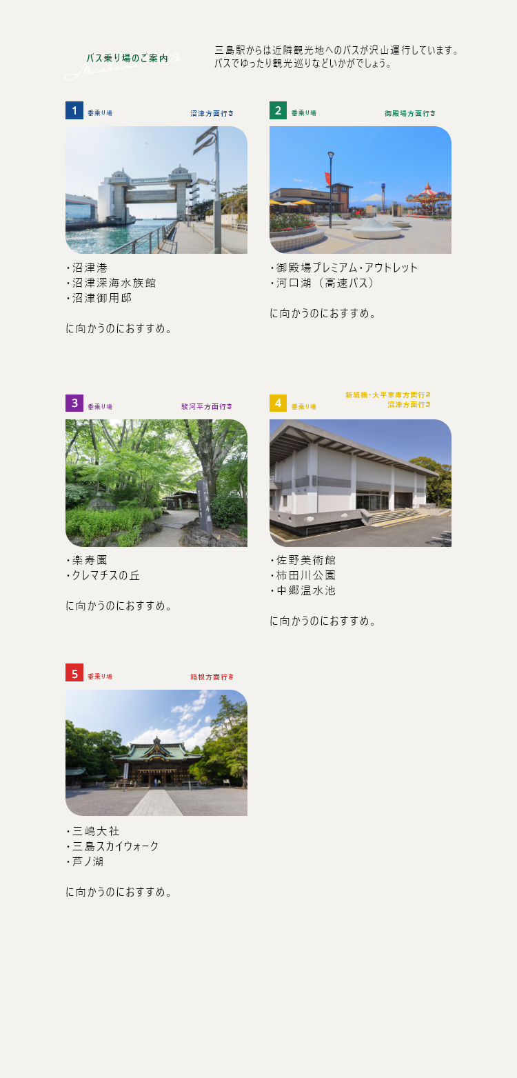 伊豆箱根鉄道で、世界遺産の韮山反射炉や修善寺へ、バスを利用して富士山、御殿場、箱根、西伊豆へと、日本を代表する観光地への快適なアクセスも可能。