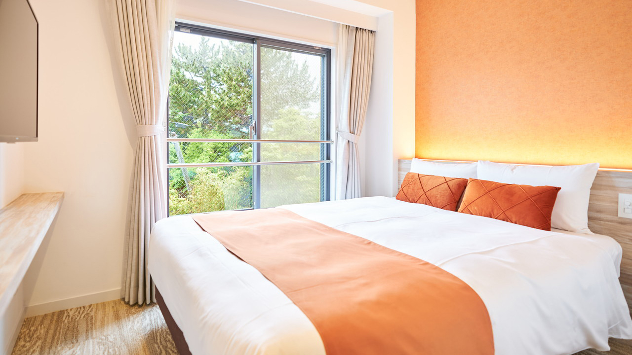 すっきりとしたシンプルなデザインが特徴のシングルルームです。一人旅や観光での気軽な滞在はもちろん、ワークデスクを完備しているため、ワーケーションなどのビジネス利用にも最適です。140cm幅の広々としたベッドを1台備えており、快適にお過ごしいただけます。※ベッドの追加は承っておりません。幼児のお子様は添い寝でのご利用が可能です。定員:1名広さ:14~15.2㎡ベッドサイズ:W 140cm×195cm ×1台