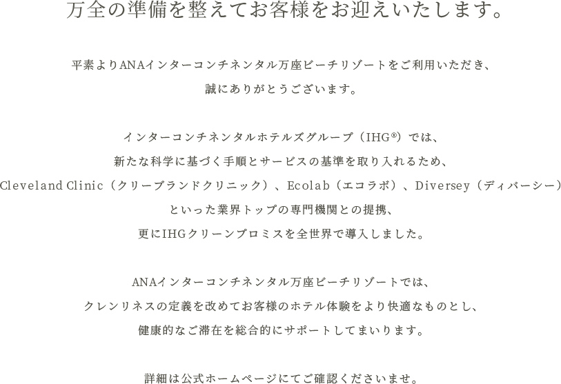 ANAインターコンチネンタル万座ビーチリゾート by IHG 新型コロナウイルスの感染拡大防止の対応