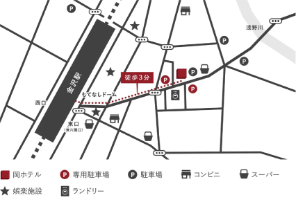 JR金沢駅東口より徒歩3分 小松空港より高速バスで40分